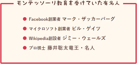 モンテッソーリ教育は、イタリアの医師マリア‧モンテッソーリが提唱した教育です。